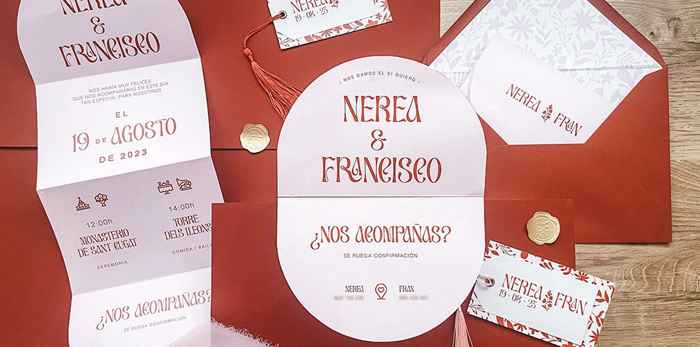 Nerea & Fran se casan este año y nos pidieron unas invitaciones que desprendiesen dulzura y elegancia. 💖 Así que mezclamos los colores del algodón de azúcar con un burdeos fiestero, unas tipografías de la escena actual y tachán! 🍸🌸A juego con unos sobres forrados en el interior, unas etiquetas y un adhesivo ...